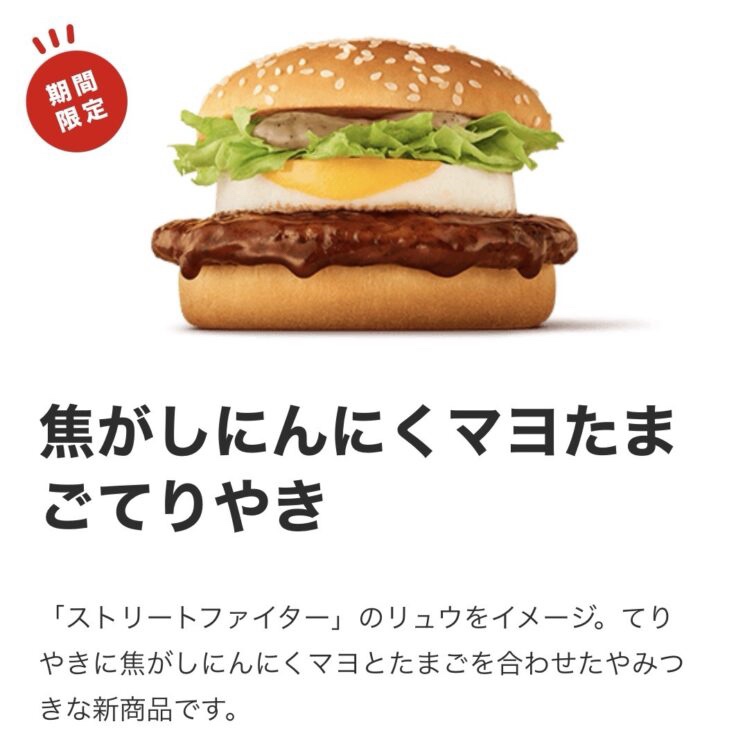 マクドナルド×ストリートファイター初コラボ!「焦がしにんにくマヨたまごてりやき」など新バーガー3種が登場
