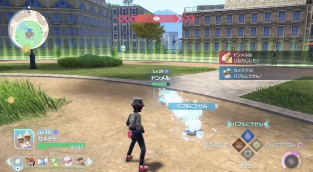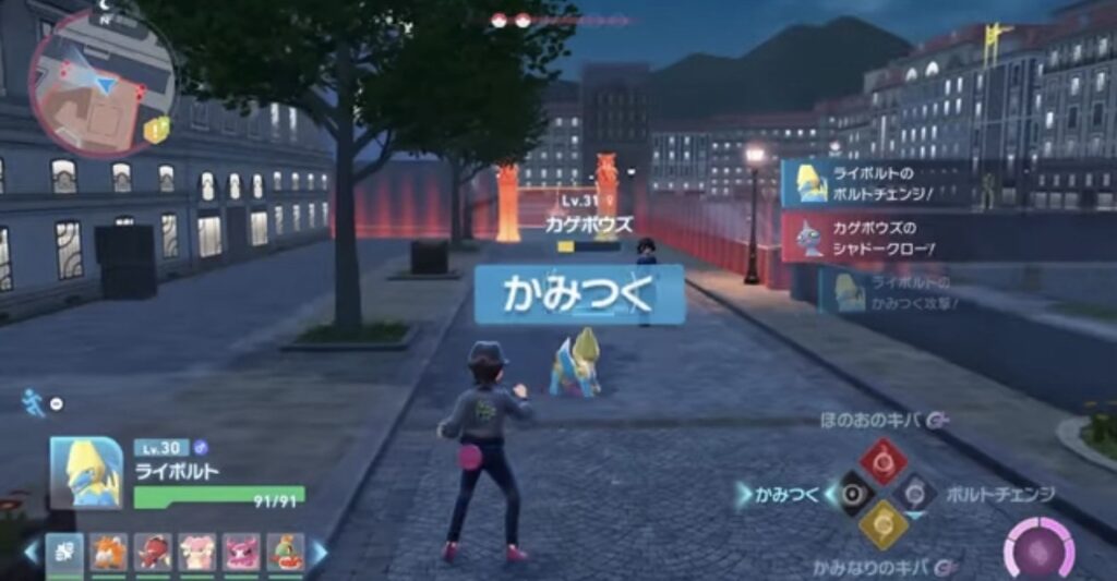 『レジェンズ アルセウス』のように、物陰に隠れてボールを投げて直接捕獲したり、シームレスにバトルに突入したりと、都会のフィールドと自然が融合したマップをオープンワールド級の自由度で探索できます。まさに「作り込まれた大都市を冒険する」という、新しいポケモン体験がここにあります!