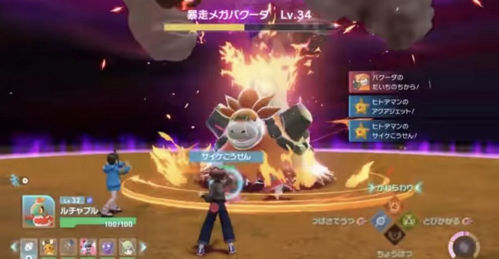 しかし、物語は一筋縄ではいきません。街の各地でポケモンが突如メガシンカし、制御不能に陥る「暴走メガシンカ」事件が発生。プレイヤーは街の自警団「MZ団」の仲間と協力し、暴走した強力なボスたちを鎮めていくことになります。このスリリングなボス戦は、『レジェンズ アルセウス』のキング戦を彷彿とさせます。